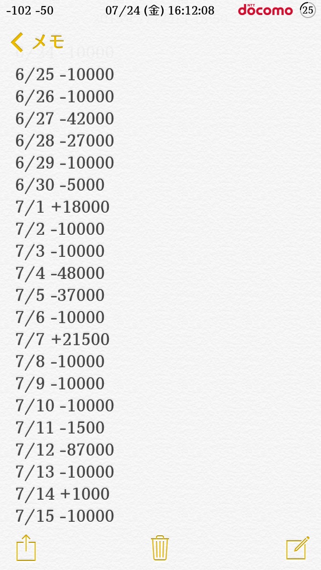iPhoneのメモ帳で収支つけてるレベルなんだけどそれで良かったら貼るけどいい?
