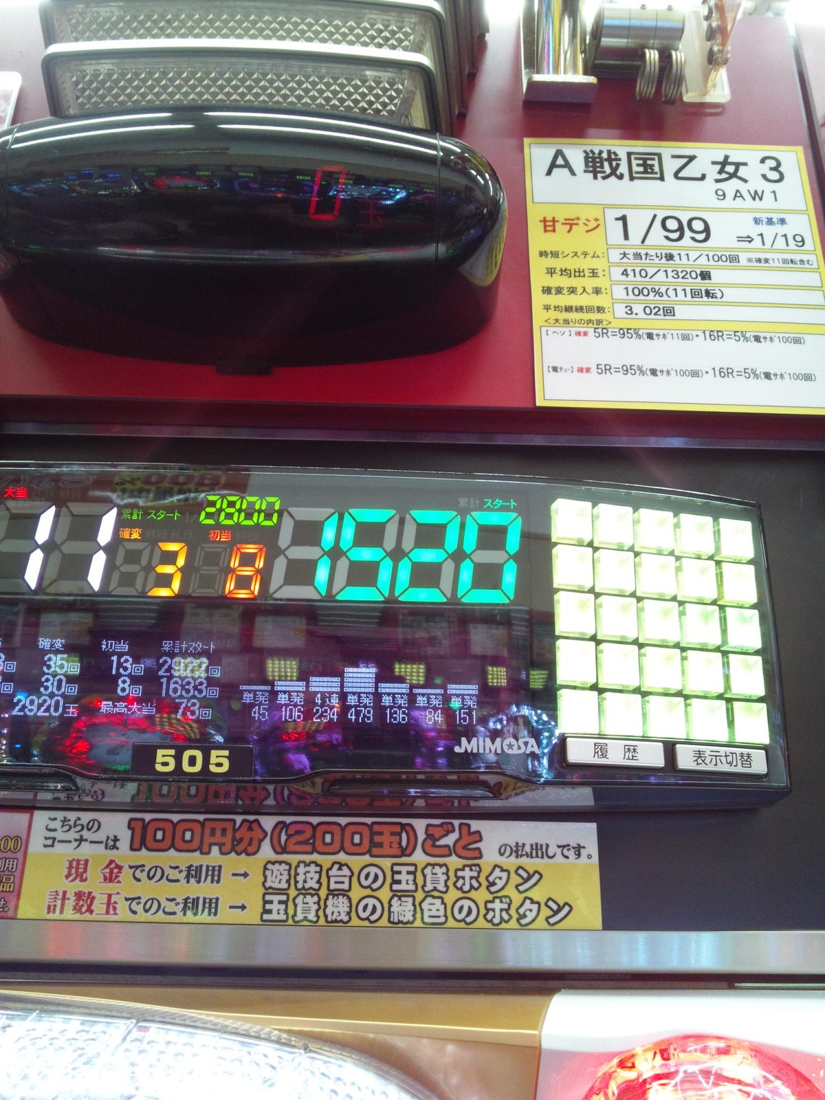 3ヶ月前に戦国乙女3の甘デジで1520回転