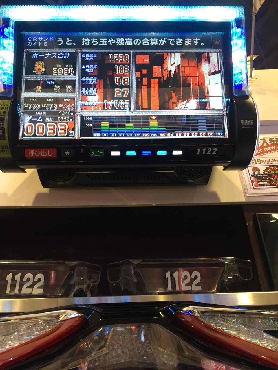 あと、連チャン中、右のWINランプの下にひっそりとカエルランプが 点灯するの初めてみたんだけど、天国示唆?それとも超天国?